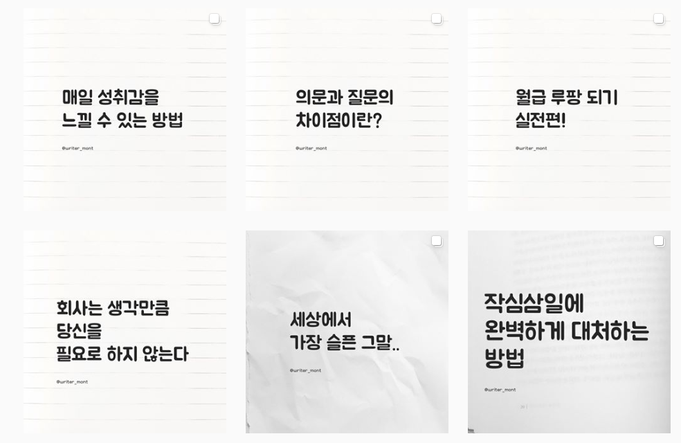 인스타그램은 조금은 다른 방향으로 운영하고 있다, 각 채널마다 채널의 특성에 맞는 콘텐츠를 작성 하고 있는데, 인스타그램이 가장 쉽고 재미있게 운영되고 있는 것 같다. 최근에 책을 많이 읽고 있는데 그 책들에 영감을 받아, 카드뉴스를 제작하고 해당 콘텐츠를 업로드 하는 방향으로 매일 1건~3건 사이로 올리고 있다. 생각보다 반응이 괜찮다. 나쁘지 않은 것 같다.