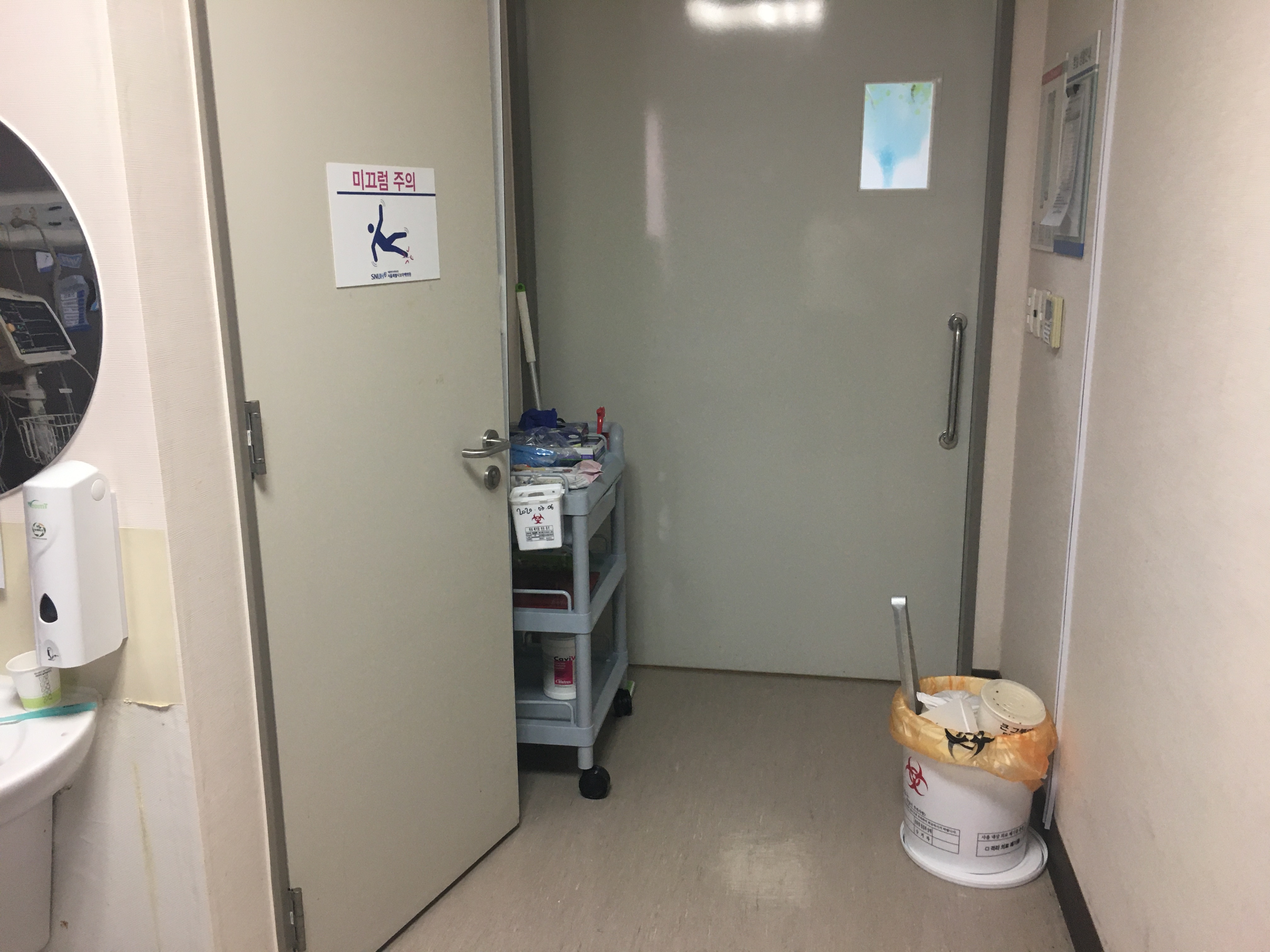 두번째, 어제 지급 받았던 병원복과 침대에 깔려있는 얇은 시트는 일회용이라고 한다. 다만, 사용하는데 문제가 없을 경우 교체는 삼가달라고 했다. 병원복은 너무얇은 부직포 재질로만 되어있어, 나는 입고 왔던 츄리닝을 계속 입겠다고 했다. 춥기도 했고, 그게 더 편했다.