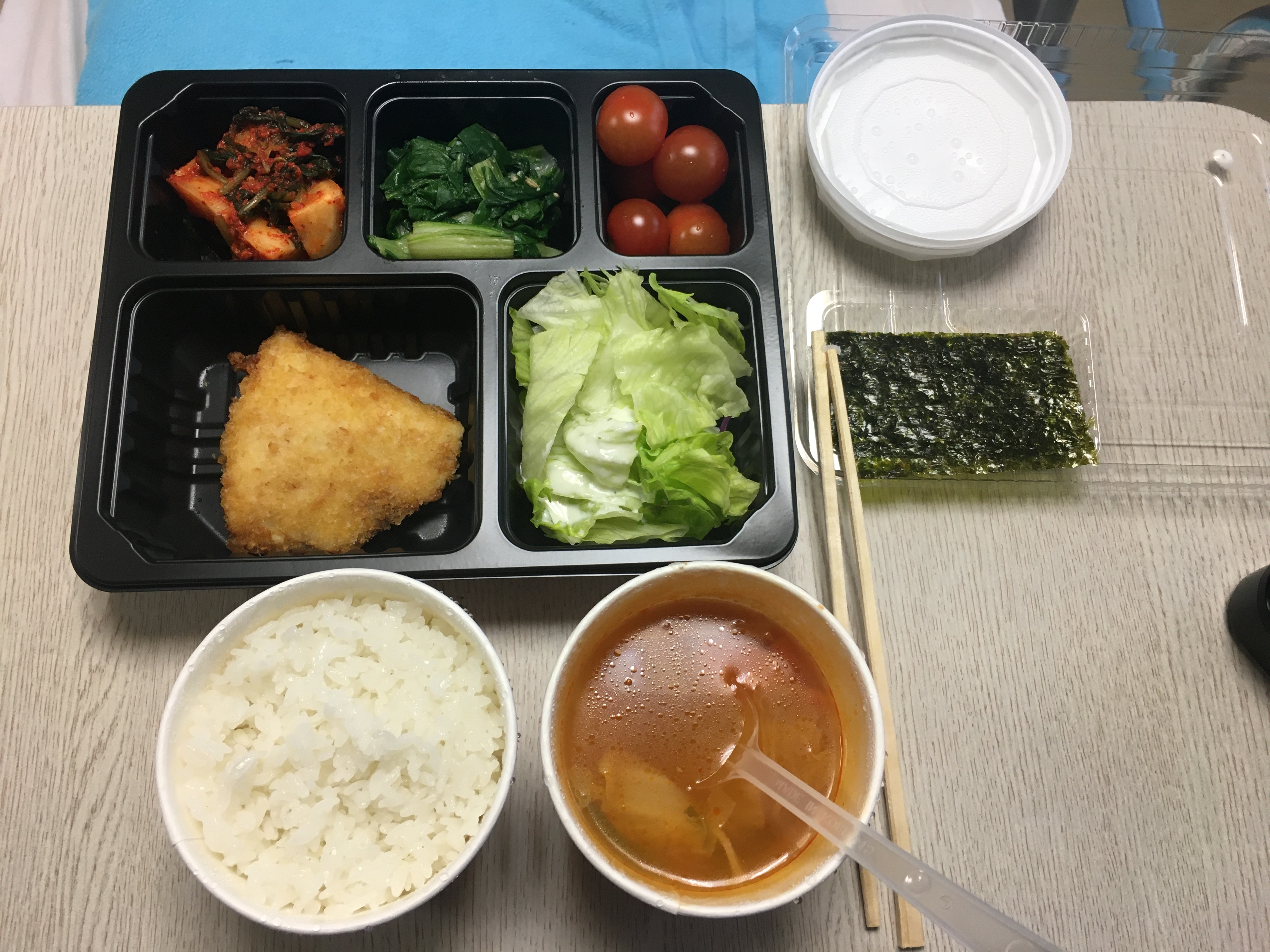 세번째, 매일 아침 7시 반, 정오, 오후 5시 30분에 식사를 가져다준다고 한다. 그리고 저녁식사 때에는 2L물이 항상 같이 나온다고 했다. 그리고 아침식사를 가지고 간호사가 들어올 때, 병실 내부를 청소 및 소독해준다고 한다.