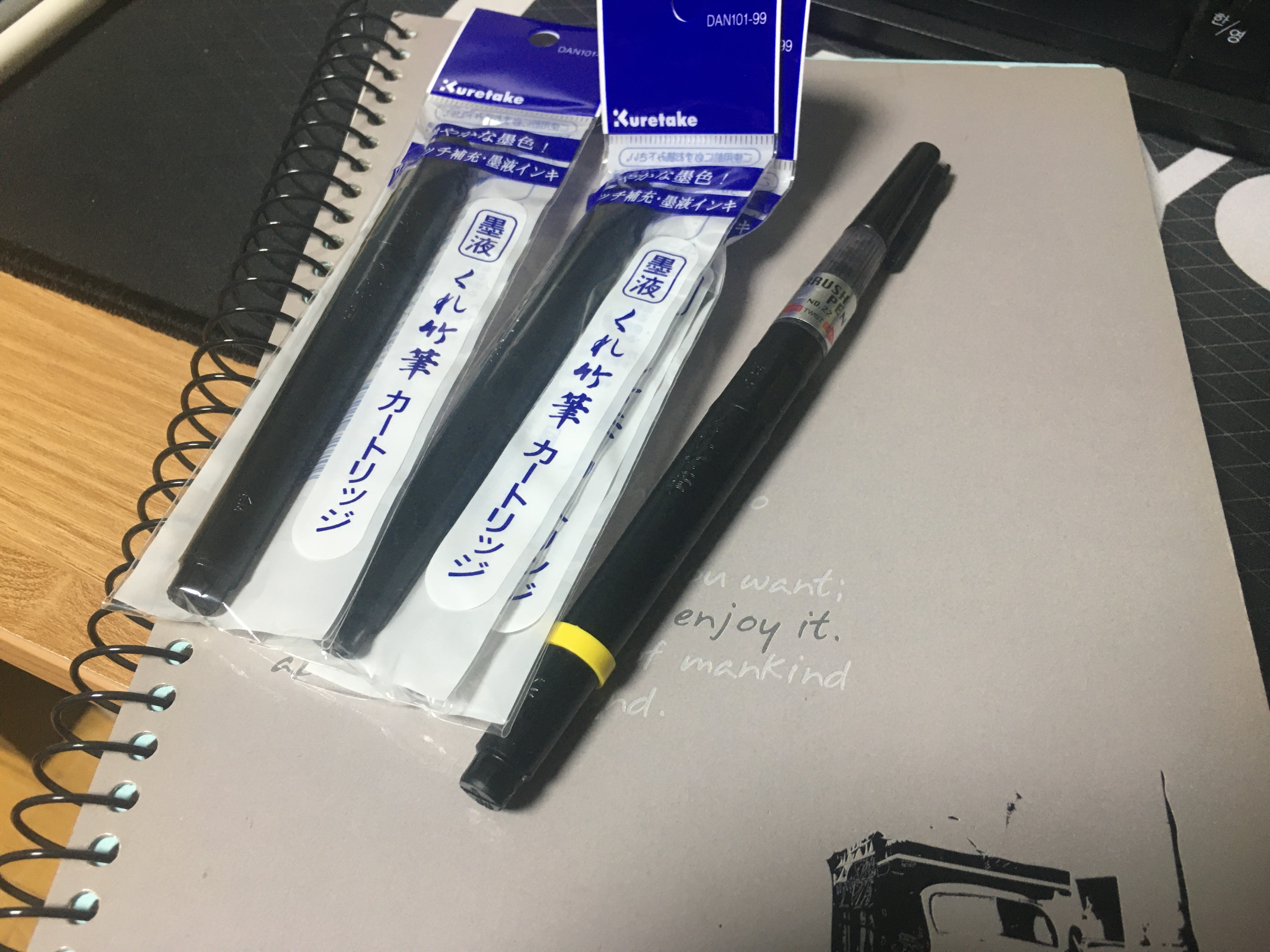 영상을 보는 도중에, 캘리그라피를 하기 위해 필요한 물품을 주문했다. 우선, 가장 많이 사람들이 사용하는 붓펜과 리필 그리고 캘리그라피 책을 한 권 골라봤다. 책의 경우, 한 권을 가지고 계속 보아도 되지만, 내가 파악한 캘리그라피는 사람 개개인마다의 특성이 녹아 있기 때문에 다양한 책을 구매해서 모든 서체들을 써보고 익혀 본 후, 나만의 서체를 찾는 것이 중요하다라는 생각이 들었다.